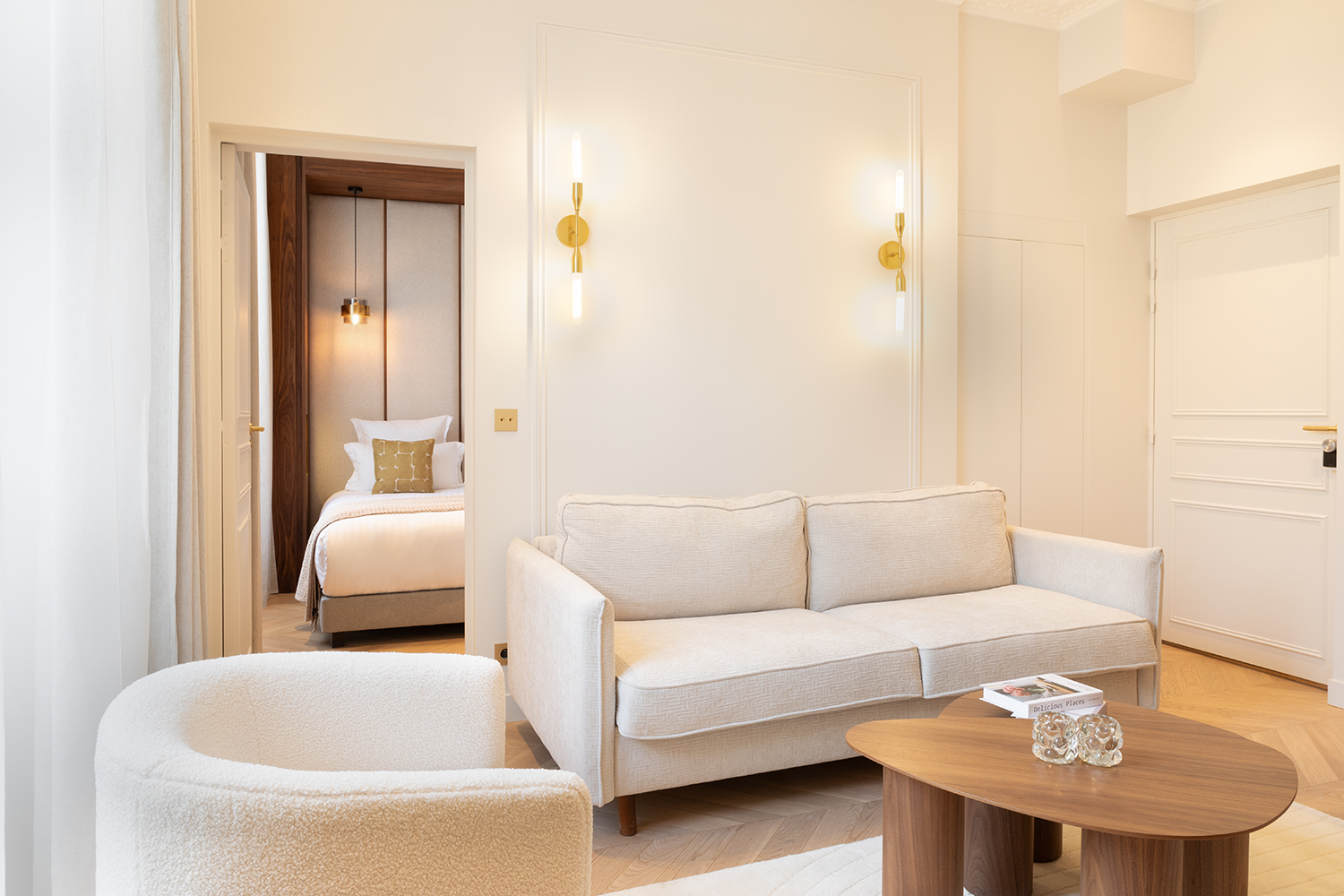 L’appartement, situé au premier étage d’un bel immeuble avec ascenseur, a été imaginé par nos architectes pour s’intégrer parfaitement au raffinement du quartier. Chaque espace a été soigneusement pensé afin d’offrir un séjour à la fois élégant et confortable.